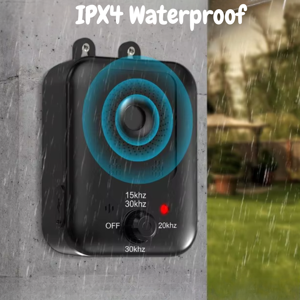 - 15kHz/30kHz (Wisselmodus): Wisselt tussen tonen – voorkomt gewenning bij aanhoudend blaffen.